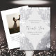 A heartfelt message on the back is included with this beautiful thank you card. Included is elegant real foil on the front. You can delete the message and write your own if you choose. This custom wedding thank-you card also features a personal photo— ideal for showcasing a favourite moments or portraits from your big day. Fully customisable with your names and a changeable personal note, this card is a beautiful way to express gratitude to family and friends who made your celebration unforgettable. The writing on the front is not foil.