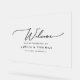 Welcome your guests to your special day with this elegant acrylic sign. Designed with a modern and clean aesthetic, it beautifully displays the names of the wedding couple, along with the wedding date and location. This sign ensures your guests feel at ease and welcomed. Its timeless design seamlessly complements any wedding decor, while the personalised details add a unique charm to this cherished memento. Position it at the entrance of your venue to create a warm and inviting atmosphere that sets the perfect tone for your celebration. Your guests will feel embraced and excited to partake in the festivities with this stunning and personalised wedding sign.