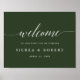 Wedding Welcome poster with modern script text. The word "welcome" cannot be edited but can be resized to fit your poster size. All other text can be fully edited. Shown with hunter green background. Choose any background colour to coordinate with your wedding colours.