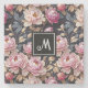 Elegant Welcome Blush Pink Peony Floral Monogram Stone Coaster