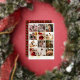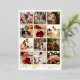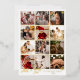 Elegant year in review 12 photos for 12 months gold foil script text "What A Year!" with foil snowflakes. Back features a holiday floral pattern with an arched panel for your family Christmas or holiday letter. Placeholder template photos courtesy Unsplash.