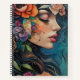 Immerse yourself in the captivating allure of the elegant profile of a woman adorned with blooming flowers. The vibrant coral, soft lavender, deep indigo, and lush green hues intertwine to create a breathtaking portrait of beauty and nature. This design celebrates colour and artistry and is perfect for journalling, note-taking, or as a thoughtful gift. Let your imagination run free.