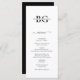 A minimalist black and white monogram initials wedding design. A simple design that uses the bride's and groom's initials and names to create an elegant classic monogram. A charming black and white minimalist monogrammed design with classy script typography. An elegant black and white monogram initials themed wedding menu card design with modern elements. Matching wedding invitations and other stationery items are also available.