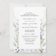 Delight friends and family with this beautiful wedding invitation. Design with exquisite watercolor greenery and white and blue flowers framing your wedding details. Elegant and classic style with traditional wording with parents' names. Back with beautiful watercolor floral details. Part of our "Elegant Bliss" collection with a variety of coordinating invitations, insert cards, RSVP cards, mailing accessories, save the dates, thank you cards, and event signs and products.
