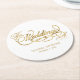 Elegant White and Faux Gold Calligraphy Wedding Round Paper Coaster