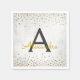 Elegant White and Gold Foil Confetti Monogram Napkin