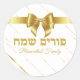Elegant White and Gold Hebrew Happy Purim Classic Round Sticker