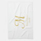 Simple Elegant White and Gold Monogram Name Kitchen towel