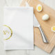 This white kitchen towel has a faux gold monogram. The faux gold is an artistic rendering.