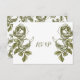 Elegant editable RSVP response cards with golden script and block letters and a vintage etching of roses in white and golds, restored from an antique manuscript.