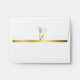 Lovely white wedding invitation envelope, with graphics of a gold tone band, and pretty calla lily, on the back flap. The inside is done in ivory and the address done in black script text, on the front, is ready to personalise with your information. Elegant finishing touch to our Calla Lily wedding RSVP response cards.