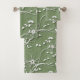 Elegant White and Green Graphic Floral Swirl Bath Towel Set
