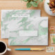 Elegant special occasion envelope, with a silver, green and white marbled pattern, on the outside, and graphics of a silver foil lining the inside. Silver edged text areas for addresses, with fully custom black text, on the backside.