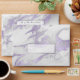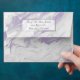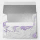Elegant special occasion envelope, with a silver, lavender and white marbled pattern, on the outside, and graphics of a silver foil lining the inside. Silver edged text areas for addresses, with fully custom black text, on the backside.