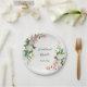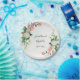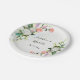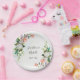 Personalised wedding paper plate depicts an elegant oil painted floral design with white and pink roses and greenery on an oil textured background.