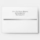 Elegant invitation envelope done in white, with a thin silver like border, on the back flap and on the bottom front. A silvertone foil like lining on the inside completes this versatile envelope. Personalise the return address to suit your needs.