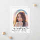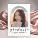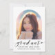 Send your family and friends a unique personalised floral framed photo 2025 graduation announcement card to wow them. This modern template design features a photo in an arch shape for you to change to your own on a white background. Below your photo is the word "Graduate" in modern handwritten script typography and your name, high school and year to personalise. Designed by Susan Coffey.