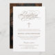 Tan beige text on white textured paper, holy baptism invitation. Elegant script is the main focus. Cross element can be moved to suit your text, click "customise it". Also backer with photo, frame and pattern is optional. This template features rounded corners. (optional) photo credit: Roger Fontes 2002