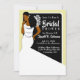 This elegant bridal shower invitation features an African American bride wearing a white fitted gown on a black and gold background. Send out this cute invitation to your family and friends. Feel free to customise this invitation by changing the text, font, and colour.