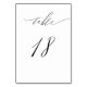 Elegant White Black Modern Script No 18 Wedding Table Number