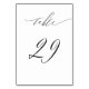 Elegant White Black Modern Script No 29 Wedding Table Number