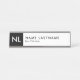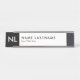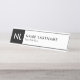 Customise this Modern Clean Elegant Minimalist Monogram Desk Nameplate, with black name, lastname and your title on a white background and with white monogram on a black.