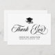 Elegant White Black Script Grad Cap Graduation Thank You Card