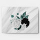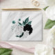 elegant white black and teal blue flowers with some beautiful teal blue leaves on silver grey marble background botanical wedding envelope