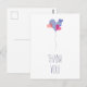 Elegant white blue pink balloon hearts minimalist postcard