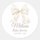 Elegant White Bow Baby Shower Classic Round Sticker