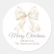 Elegant White Bow Merry Christmas Classic Round Sticker