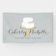 Coordinates with the Elegant White Cake with Florals Cake Decorating Business Card Template by 1201AM. An elegant white tiered cake decorated with white flowers sits atop a faux gold cake stand for a beautiful aesthetic on this bakery or cake decorator's customisable banner. Update the calligraphic text with your name or business name for an instant logo. This design is part of a series of coordinating office supplies. Shop matching stationery, flyers, labels and more in our shop: zazzle.com/1201am. Use this banner for signage, display banners, events and more. © 1201AM CREATIVE
