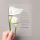 This elegant floral design features white calla lilies. The beautiful white calla lilies are complete with their green stems. The bride's and groom's names are colour matched to the green stems of the calla lily flower. The image of the elegant calla lily flowers stand alone on the reverse side. This is the perfect elegant floral wedding design ideal for any wedding theme. Elegant calla lily flower wedding invitation design with modern elements. Matching wedding stationery items and other wedding invite formats are also available.