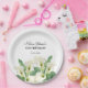 Elegant floral birthday paper plate features stunning watercolor white calla lily with vibrant typography.