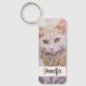 Personalised keychain with a lovely illustration. A long haired white cat looking regal and elegant. Surrounded by pink flowers, gold and diamond jewellery.