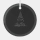 The simple "Merry Christmas and happy New Year!" script in white completes the refined look. This ornament is perfect for those seeking a modern, chic, and striking piece to elevate their Christmas tree or give as a stylish, unique gift.