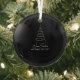 Bring a touch of minimalist sophistication to your holiday decor with this black glass ornament. It showcases a clean, white, abstract line-art Christmas tree set against a dramatic dark background.