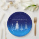 Elegant White Christmas Tree with Gold Stars Paper Plates. Add a touch of elegance to your Christmas Holiday Season with these Festive White Christmas Tree Paper Plates with Gold Stars on a Blue background. The text includes: the stars are brightly shining. Be sure to look for the matching Elegant White Christmas Tree with Gold Stars Holiday Collection for matching Napkins and accessories.
