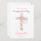 Elegant flat card for confirmation with a floral cross on a white backdrop. Personalise front with text, name and date...backside with text.