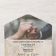 Introducing our elegant, chic white peony themed wedding invitation featuring a cream, gold, ivory background with white peonies accents and dark brown, almost black text. At the top of the invitation you can customise with a personalised photo that will have a cream transparent overlay so it blends with the existing colour scheme of this invitation. This invitation is perfect for couples seeking a classic aesthetic for their special day. The highlight of this invitation is the convenient QR code, allowing guests to RSVP effortlessly using their smartphones. For traditionalists, we've included a traditional paper RSVP option as well. With the all-in-one design, guests can easily tear away the RSVP section and send it back. Additionally, we've provided email information for RSVPs, ensuring a seamless and convenient RSVP process. Fully customisable, this invitation also offers the option to add a cherished photo, adding a personal touch to your wedding announcement.