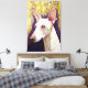 This stunning piece of fine art, featuring a beautiful white Ibizan Hound painted in the style of Klimt, on a deep purple and golden yellow background would look incredible and unique in any home. Perfect for dog lovers and art lovers, this gallery wrap would be the ideal gift for a podenco lover or dog mum.