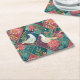 Elegant White Doves Pink Floral & Gold Geometric Square Paper Coaster