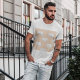 This mens graphic tee offers a modern take on the traditional animal print with a repeating white elephant design. The contrast between the crisp white illustrations and the muted peach background creates a versatile look that pairs well with jeans or shorts. It is a great gift for the man who appreciates subtle safari vibes and clean, minimalist artwork.