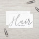 Elegant customisable business card template with white background and FAUX silver bold hair text.