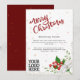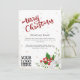 This elegant Company/employee Merry Christmas holiday card on white features a red handwritten script Merry Christmas, beautiful gold outlined white flower, red berries and green botanicals. Subtle and random snowflakes add a winter touch to this elegant Christmas Holiday card.