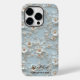 This design features an elegant floral botanical pattern with delicate white blossoms and fine branch details set against a soft blue background. The refined composition creates a calm, timeless aesthetic inspired by nature and classic decorative art. Subtle textures and balanced spacing give the design a luxurious, soothing feel. Two editable text fields at the bottom allow you to add a name and a short phrase, making the piece feel personal while maintaining its clean, sophisticated look. Perfect for lovers of floral elegance, minimalist beauty and nature-inspired design.