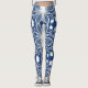 Elegant White Floral fabric Pattern on Deep Blue Leggings
