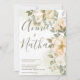 Elegant White Floral Green Leaves Script Wedding Invitation