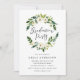 Chic, elegant graduation party invitations featuring a white floral wreath with lush green foliage accents and flowing script font. Personalise the stylish invites by adding your graduation party details for a design that will impress your guests. The reverse side of the invites features a green watercolor background. For a more custom design, add your graduate's photo and custom text to the back of the invite.