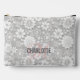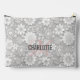 Elegant white floral lace pattern monogram name Accessory Pouch.